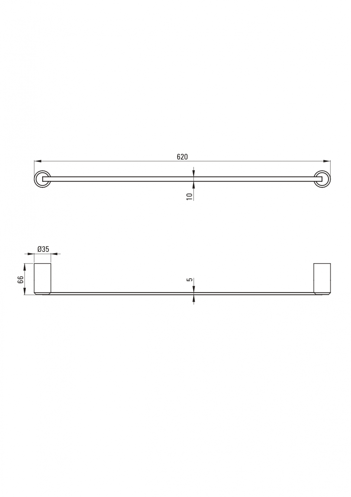 Cu o adâncime de 66 mm, o lățime de 620 mm și o înălțime de 35 mm, suportul are o formă compactă și se montează pe perete.