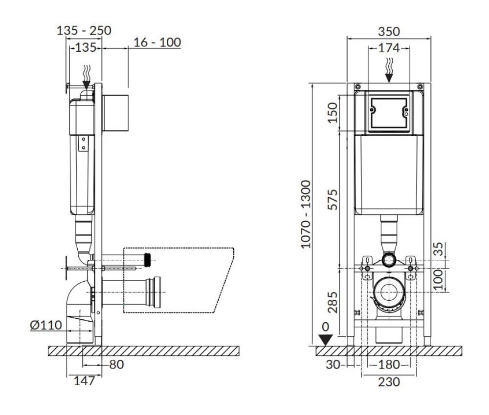 Compatibilitatea vas-buton: suportă vasuri WC cu distanța între gauri de fixare de 18 cm sau 23 cm