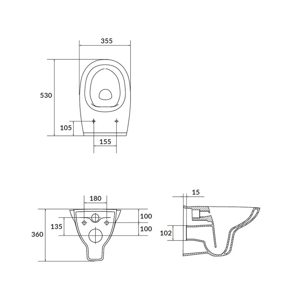 Setul este conceput ca soluție completă pentru baie — combină rezervor incastrat, vas WC suspendat, capac și buton de acționare.