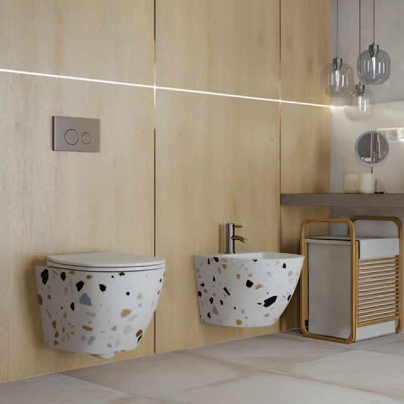 Descoperă eleganţa subtilă şi tehnologia modernă cu setul WC suspendat Spectrum Trendi Stone rimless în finisaj alb mozaic. Designul compact îl face ideal pentru băi de apartament, spaţii de hotel sau amenajări care pun accent pe stil şi eficienţă.