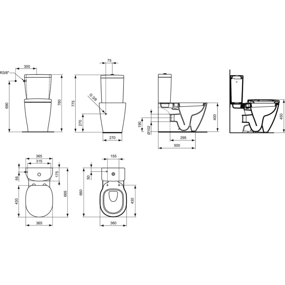 Rezervor vas wc Ideal Standard Connect Space Cube alb lucios cu alimentare inferioara